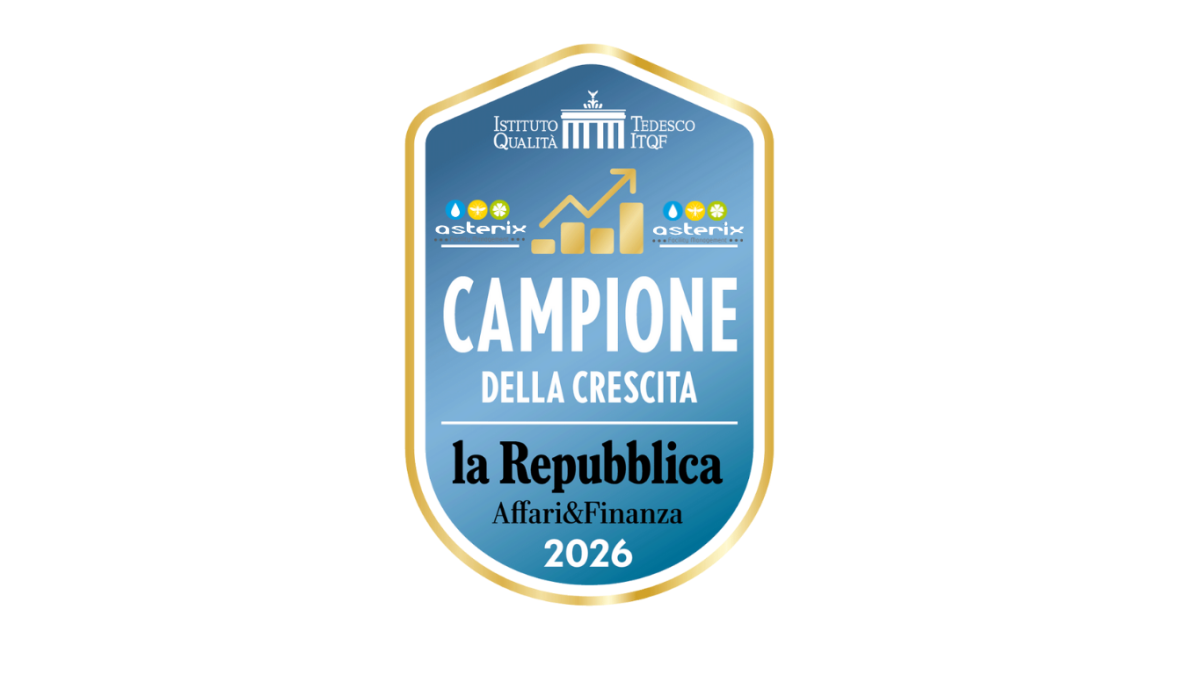 Siamo orgogliosi di annunciare che Asterix è stata selezionata tra i Campioni della Crescita 2026, il premio che celebra le aziende italiane più dinamiche e in forte espansione, un prestigioso riconoscimento da La Repubblica Affari & Finanza.